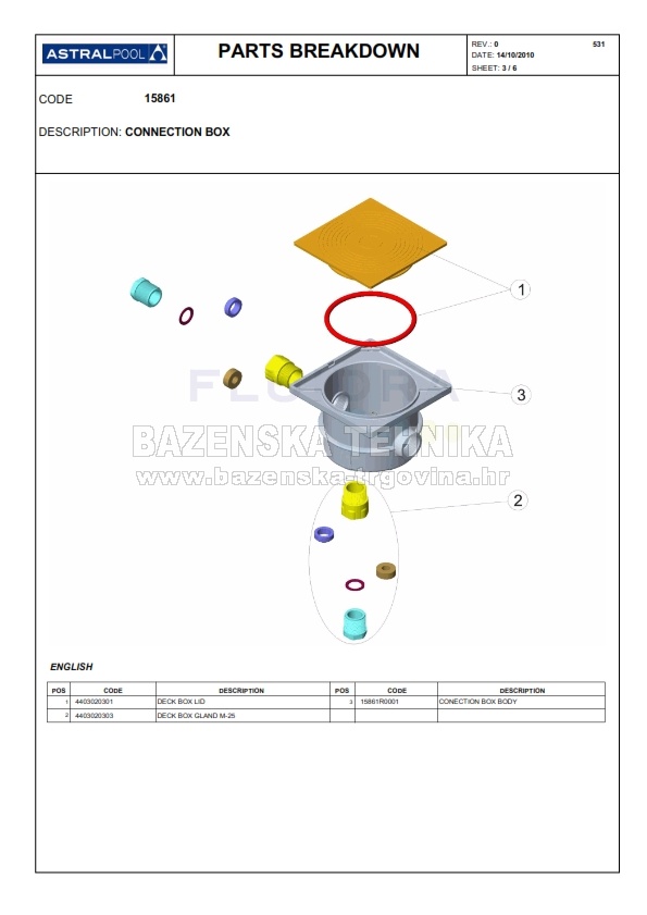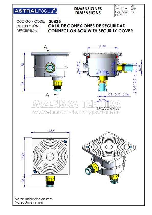 Web trgovina nudi slijedeće mogućnosti plaćanja: PPLAĆANJE PRILIKOM PREUZIMANJA PLAĆANJE PO PREDRAČUNU PREKO BANKE ![]() Razvodna kutija za podvodni reflektor tip ASTRALU razvodnu kutiju se preko spojne cijevi sprovede kabel podvodnog reflektora Astral te se u kutiji spaja sa kabelom koji stiže iz strojarnice gdje se nalazi transformator. Razvodna kutija ima vodotijesni poklopac i uvodnice za kablove. Razvodnu kutiju namjestimo tik uz bazen, u visini plaže. Napomena: na slici u prilogu vidi se kako je razvodna kutija ugrađena uz bazen Slični proizvodi |