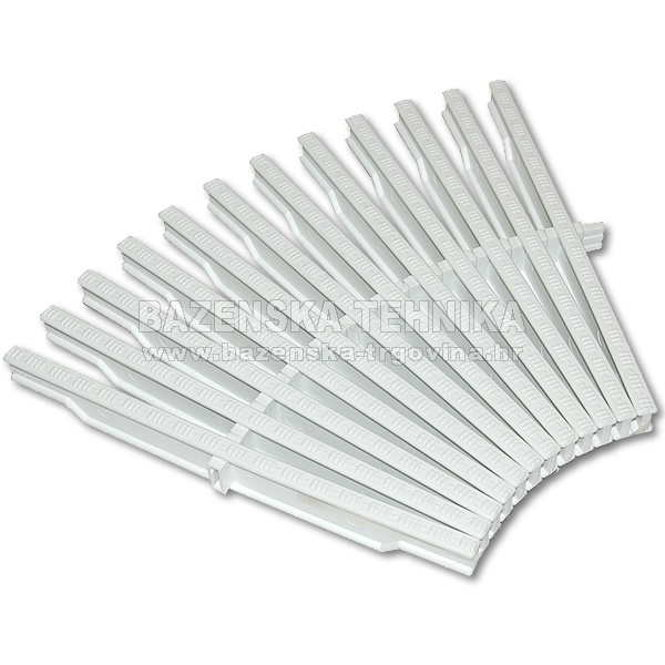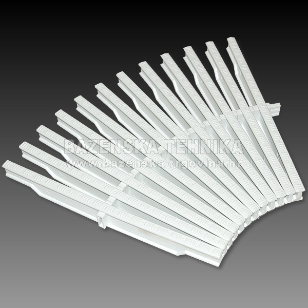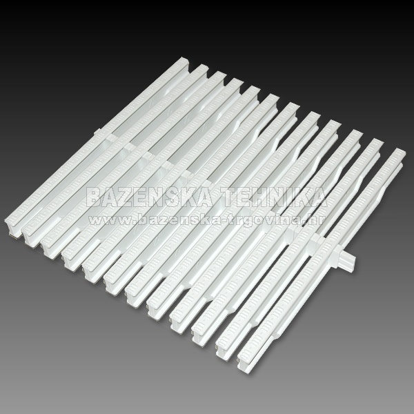 Web trgovina nudi slijedeće mogućnosti plaćanja: PPLAĆANJE PRILIKOM PREUZIMANJA PLAĆANJE PO PREDRAČUNU PREKO BANKE Rešetke za prelivne kanale sa krivinama (okruglinama)Rešetka za krivine se sastavlja iz pojedinačnih članaka, koji se spajaju samo u jednoj točki na sredini pojedinog članka. Zbog toga se rešetke za krivine vrlo jednostavno namješta u prelivne kanale sa krivinama različitih radijusa. Višina rešetke je 22 mm. 1 kom je 2,22 cm - 45 komada je 1 m Izvedbe širina 245 mm (širina prelivnog kanala 250 mm) širina 295 mm (širina prelivnog kanala 300 mm) Boja: Bijela Cijena je za komad Slični proizvodi |