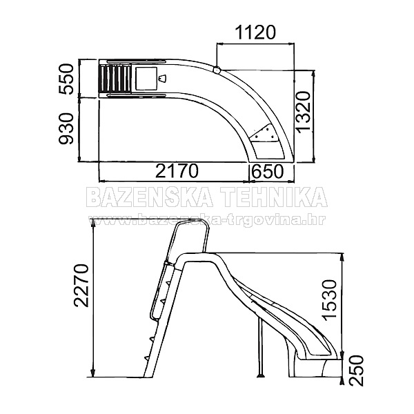 Web trgovina nudi slijedeće mogućnosti plaćanja: PPLAĆANJE PRILIKOM PREUZIMANJA PLAĆANJE PO PREDRAČUNU PREKO BANKE ![]() Tobogan sa lijevom krivinomModel sa krivinom u lijevu ili desnu stranu, sa aluminijskim rukohvatom u bijeloj boji, sa priključkom za vodu. Visina tobogana je 1,53 m, sa rukohvatima ukupno 2,27m. Tobogan je namijenjen djeci, nosivosti 50 -60 kg max. Iskljućivo za privatnu upotrebu. ( Nije za javne bazene ) Slični proizvodi |