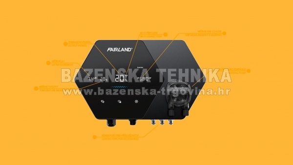 Web trgovina nudi slijedeće mogućnosti plaćanja: PPLAĆANJE PRILIKOM PREUZIMANJA PLAĆANJE PO PREDRAČUNU PREKO BANKE Solinator FAIRLAND i-SaltFAIRLAND i-SALT je sustav za kloriranje nove generacije s potpuno inverterskom tehnologijom i kontrolom izlaza od 0 do 100% . Sustav automatski prilagođava proizvodnju klora uvjetima u bazenu u stvarnom vremenu, osiguravajući stabilnu kvalitetu vode, smanjenu potrošnju energije i produljeni vijek trajanja elektroda. Ugrađeni senzori za pH, ORP, temperaturu i protok omogućuju inteligentnu automatsku regulaciju vode i dosljedne performanse dezinfekcije. Integrirana dozirna pumpa i povezivost s mobilnom aplikacijom pružaju potpuno automatizirano i jednostavno rješenje. Elegantni šesterokutni dizajn s dodirnim zaslonom odražava naprednu tehnologiju i osigurava intuitivno rukovanje. Ključne značajke